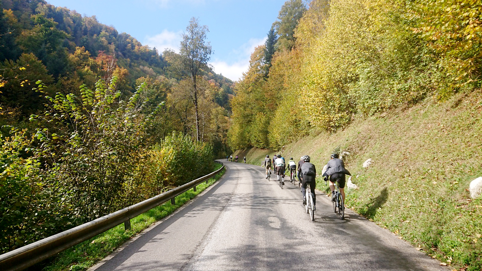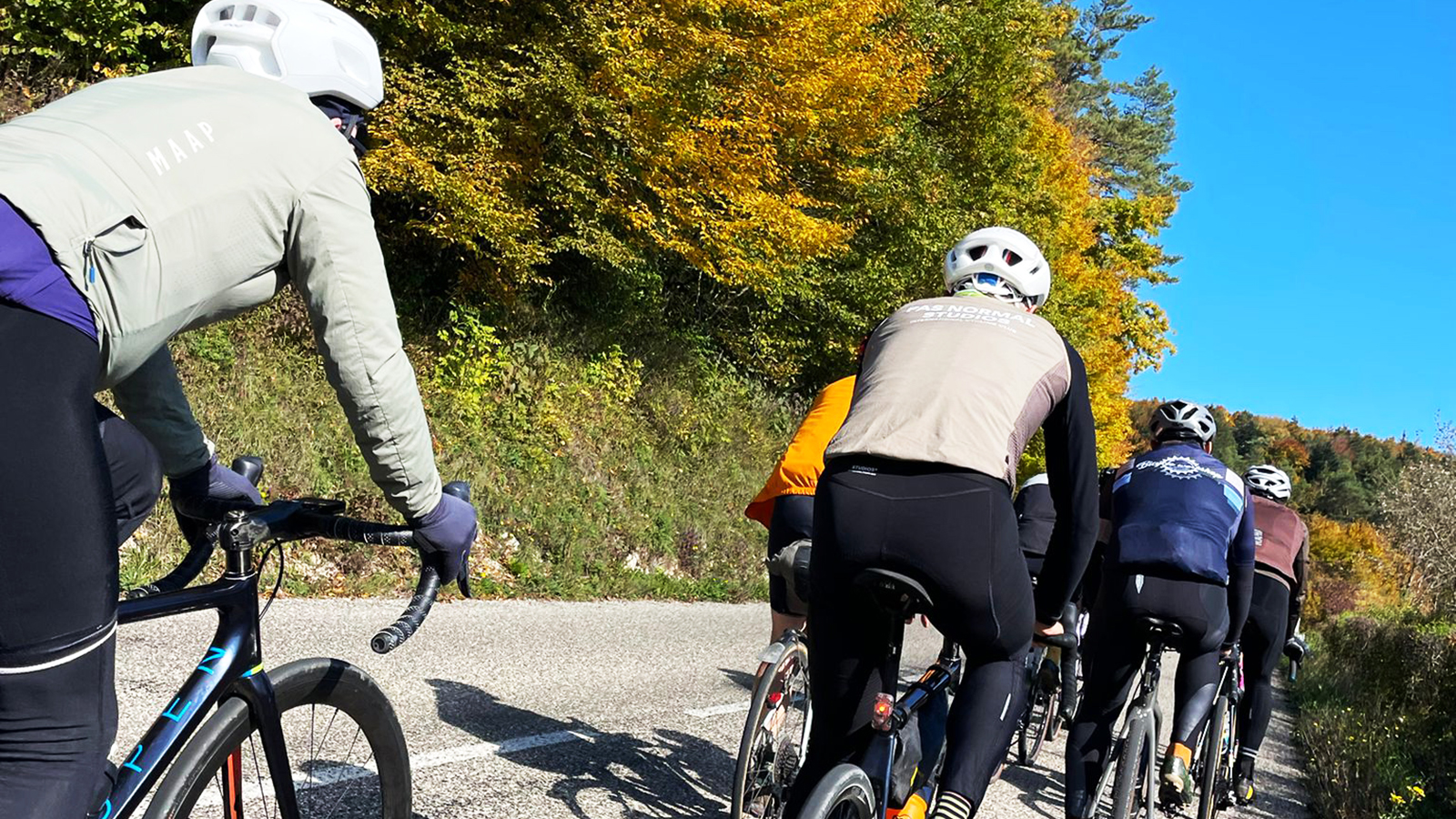 Der erste Teil der Tour führte durch abwechslungsreiche Landschaften, inklusive leichter Gravelpassagen, die auch mit klassischen Rennrädern gut zu bewältigen sind. Dank der vielseitigen Streckenführung und der Unterstützung durch unsere Guides konnten kleinere Pannen, wie Reifenpannen, schnell behoben werden, sodass alle sicher weiterkamen. Die Tour forderte insgesamt zwischen 1500 und 2200 Höhenmeter und eine Distanz von 100 bis 120 km, was den Tag zu einer echten sportlichen Herausforderung machte.